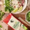 Les Noodles Larges de riz demi-complet bio sont la base du véritable phõ, le bouillon iconique de la gastronomie vietnamienne. Ces pâtes de riz originales, d’une largeur de 8 mm ont une mâche et une texture uniques en bouche. Elles donneront du corps à vos bouillons et rãmen asiatiques. Elles seront aussi idéales avec des sauces copieuses et nourrissantes. 100% végétales et sans additifs, ces Noodles Larges de riz sont fabriquées avec du riz semi-complet cultivé dans des micro-fermes selon les méthodes de l’agriculture biologique qui régénèrent le sol.