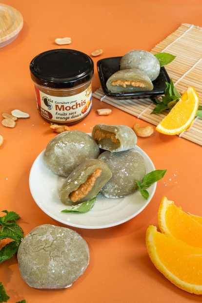 « La texture des garnitures pour Mochis Cacahuètes choco et Fruits secs orange douce est idéale pour farcir 10 daifukus mochis dans les règles de l’art. Le tour de main est facile à prendre ! »