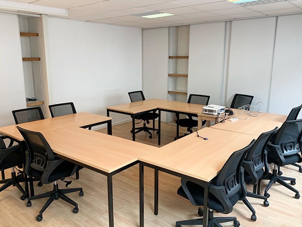 Côté bureaux : des grandes pièces, avec de larges baies vitrées sur le paysage de montagne, et enfin une salle digne de ce nom pour réunir notre petite équipe au complet ! On a même un labo photo pour les shooting produits !