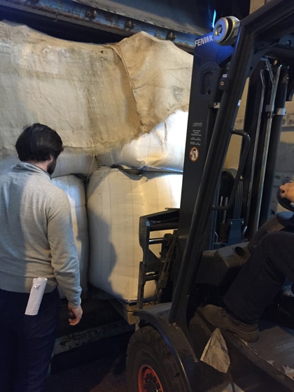 des « big bag » contenant 1 tonne de riz. Un container en contient