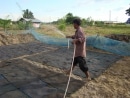 Cette année, les rizières étaient peu inondées. Du coup, les semis ont été fait en pleine terre après labourage. La terre a été hersée ensuite pour recouvrir les graines.
